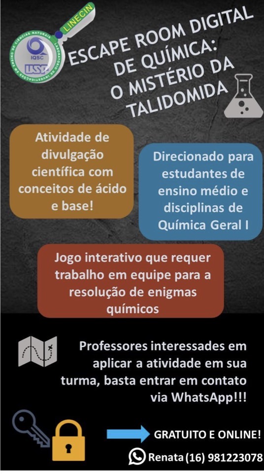 DE SOUZA, R. T. M. P.; KASSEBOEHMER, A. C. The Thalidomide Mystery: a digital escape room using Genially and WhatsApp for high school students. Journal of Chemical Education, v. 99, p. 1132-1139, 2022.